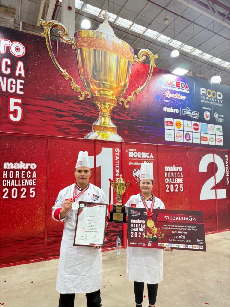 🔺 จากการแข่งขันปรุงเมนูอาหารเอเชียจานหลัก จัดเสิร์ฟในแบบโมเดิร์นจากวัตถุดิบปริศนา “Mystery Box: Asian Cuisine” ระดับเยาวชน ภาคใต้ ในงาน Makro HoReCa Challenge 2025 รอบภูมิภาค ภาคใต้