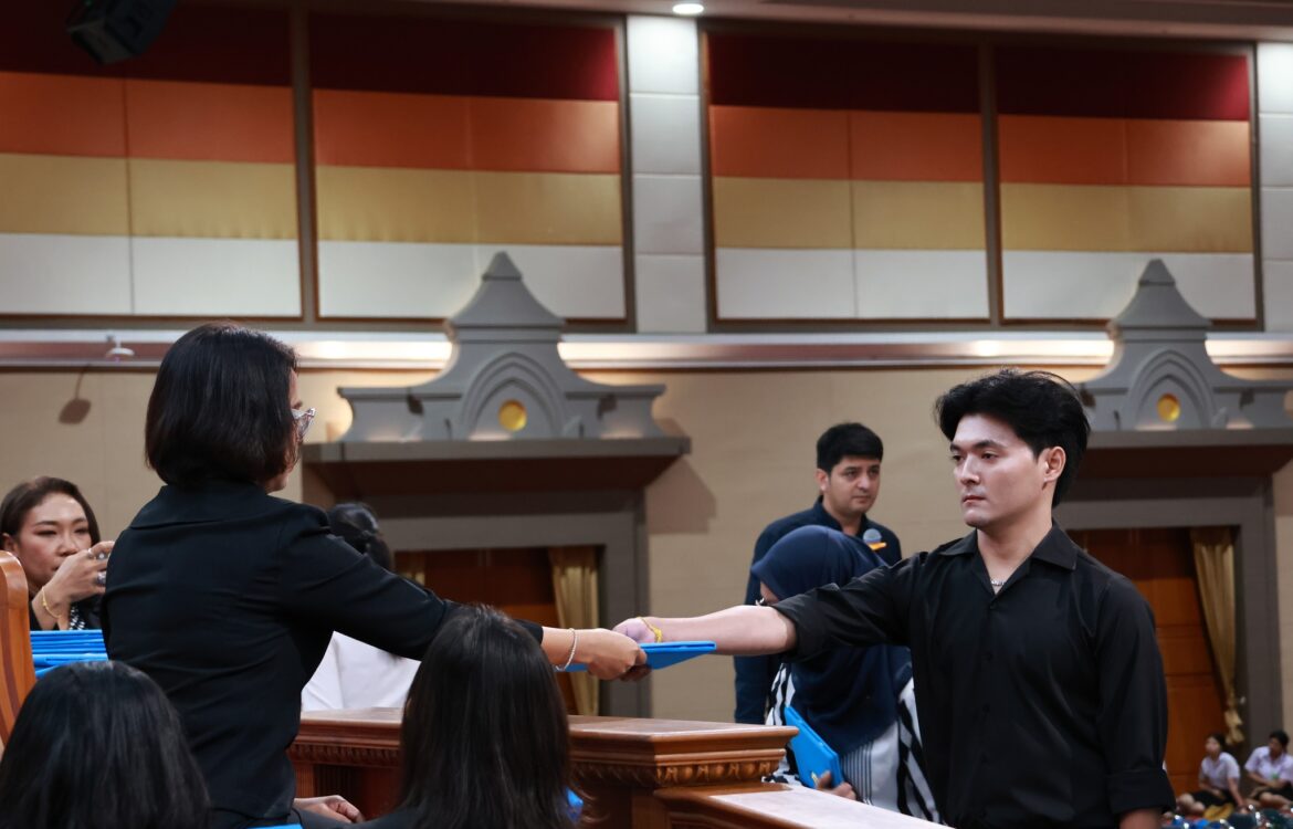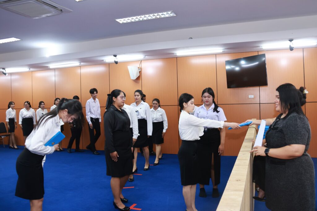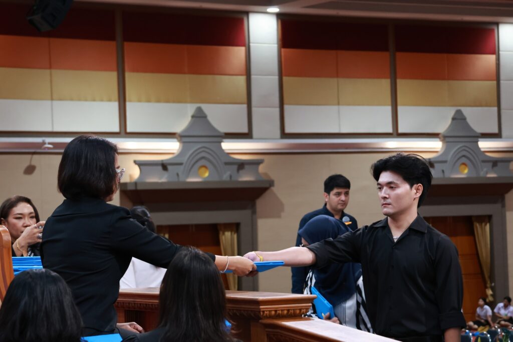 บัณฑิตใหม่ฝึกซ้อมย่อยพิธีพระราชทานปริญญาบัตร มหาวิทยาลัยราชภัฏสุราษฎร์ธานี แก่ผู้สำเร็จการศึกษา ประจำปีการศึกษา 2566 วันที่ 17 พฤศจิกายน 2568 ณ หอประชุมวชิราลงกรณ มหาวิทยาลัยราชภัฏสุราษฎร์ธานี