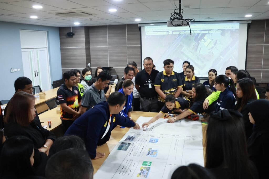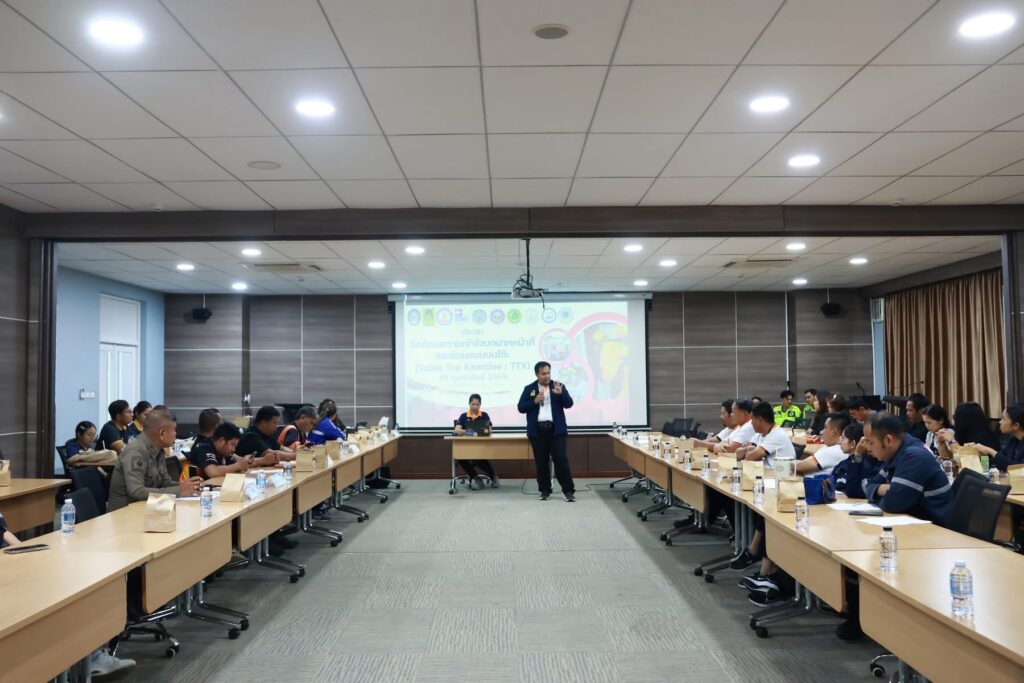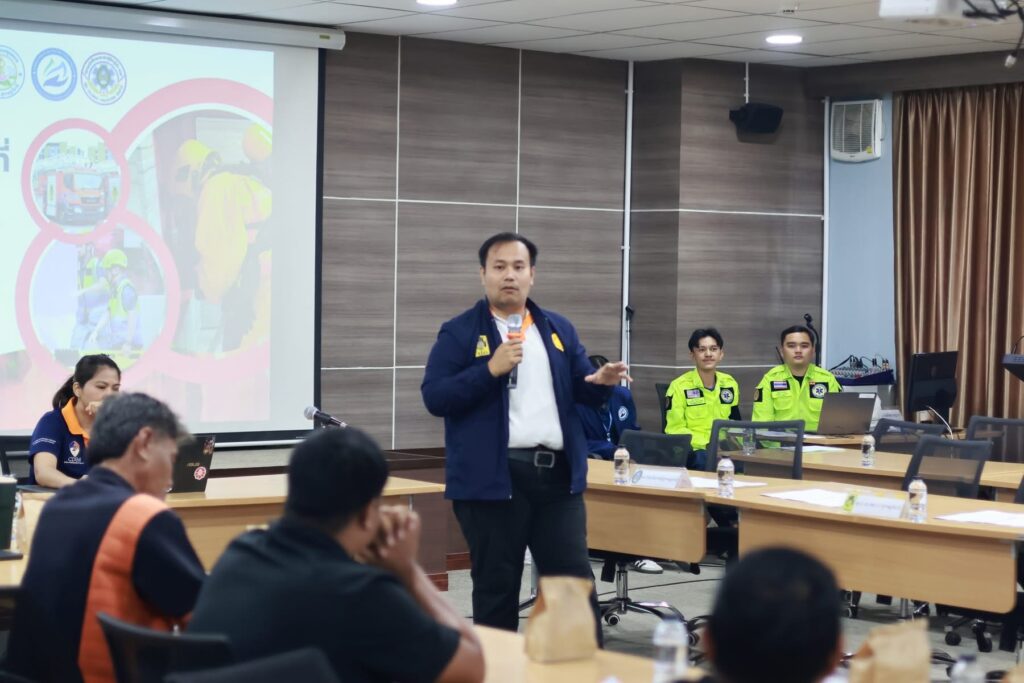 สำหรับโครงการอบรมเชิงปฏิบัติการเตรียมความพร้อมในการรับมือป้องกันและระงับ อัคคีภัย แผ่นดินไหว อาคารถล่ม เพื่อความยั่งยืน จัดขึ้นระหว่างวันที่ 9-11 กุมภาพันธ์ 2569 โดยมีหัวข้อที่บรรยายและการอบรมเชิงปฏิบัติการการเตรียมความพร้อมในการรับมือแผ่นดินไหว อาคารถล่มเพื่อความยั่งยืน การบรรยายเรื่องโอกาสการเกิดเหตุแผ่นดินไหวในพื้นที่จังหวัดสุราษฎร์ธานี ผลกระทบจากเหตุแผ่นดินไหว การบริหารจัดการเมื่อเกิดเหตุแผ่นดินไหว-ไฟไหม้ การจัดทำทะเบียนครุภัณฑ์ คน การเช็คยอดความสูญเสีย การฝึกอบรมเชิงปฏิบัติแผนป้องกันและระงับอัคคีภัยและแผ่นดินไหว การประชุมเชิงปฏิบัติการบทบาทหน้าที่ บทบาทหน้าที่ของผู้พบเหตุและขั้นตอนการแจ้งเหตุ บทบาทของผู้ระงับเหตุเบื้องต้น การเอาตัวรอด บทบาทการช่วยเหลือ ปฐมพยาบาลและการรักษาเบื้องต้น การประชุมเชิงปฏิบัติการเผชิญเหตุเบื้องต้น Table Top Exercise