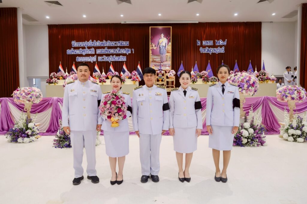 วันพฤหัสบดีที่ 2 เมษายน 2569 ผู้ช่วยศาสตราจารย์ ดร.วัฒนา รัตนพรหม อธิการบดีมหาวิทยาลัยราชภัฏสุราษฎร์ธานี (มรส.) มอบหมายให้ ผู้ช่วยศาสตราจารย์ ธาตรี คำแหง คณบดีคณะมนุษยศาสตร์และสังคมศาสตร์ พร้อมด้วยคณะผู้บริหารและบุคลากร เป็นผู้แทนเข้าร่วมในกิจกรรมเฉลิมพระเกียรติสมเด็จพระกนิษฐาธิราชเจ้า กรมสมเด็จพระเทพรัตนราชสุดาฯ สยามบรมราชกุมารี เนื่องในวันคล้ายวันพระราชสมภพ 2 เมษายน 2569 และวันอนุรักษ์มรดกไทย โดยมีนายจุมพฏ วรรณฉัตรสิริ ผู้ว่าราชการจังหวัดสุราษฎร์ธานี เป็นประธานวางพานพุ่มดอกไม้ ถวายราชสักการะ และกล่าวคำถวายราชสดุดีเทิดพระเกียรติ พร้อมด้วยนายวิทศักดิ์ จำเริญนุสิต รองผู้ว่าราชการจังหวัดสุราษฎร์ธานี ปลัดจังหวัดสุราษฎร์ธานี หัวหน้าหน่วยงานและองค์กรต่าง ๆ ในจังหวัดสุราษฎร์ธานี ทั้งภาครัฐ ภาคเอกชน องค์กรอิสระ เหล่ากาชาดจังหวัด หน่วยงานรัฐวิสาหกิจ พนักงาน เจ้าหน้าที่ และประชาชนทุกหมู่เหล่าร่วม ณ อาคารศูนย์กลางการประชุมสัมมนาภาคใต้ตอนบน ศาลากลางจังหวัดสุราษฎร์ธานี เพื่อให้ทุกภาคส่วนได้ร่วมกันแสดงออกถึงความจงรักภักดี และสำนึกในพระมหากรุณาธิคุณของพระองค์ท่าน ที่ทรงบำเพ็ญพระราชกรณียกิจนานัปการ ตลอดจนเป็นการเทิดทูนสถาบันพระมหากษัตริย์ ซึ่งเป็นศูนย์รวมจิตใจของคนไทยทั้งชาติ