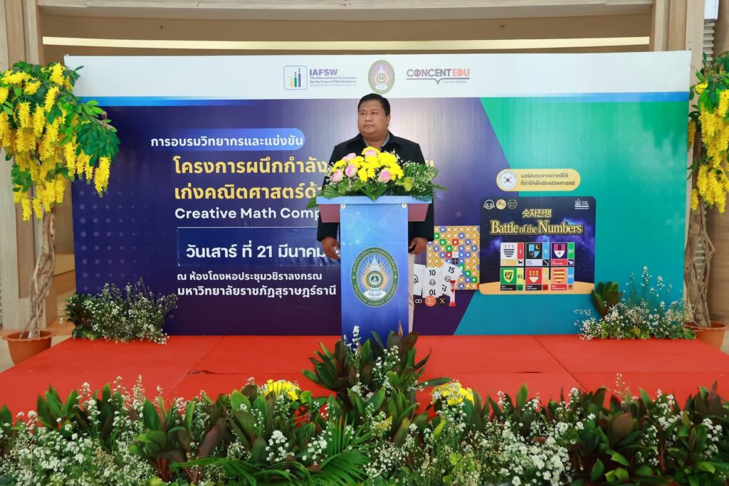 เมื่อวันที่ 21 มีนาคม 2569 มหาวิทยาลัยราชภัฏสุราษฎร์ธานี (มรภ.สุราษฎร์ธานี) เดินหน้ายกระดับทักษะการเรียนรู้แห่งศตวรรษที่ 21 จัดโครงการความร่วมมือ “STEAM – Creative Math Competition” นำนวัตกรรม Gamification ผ่านบอร์ดเกม “Battle of the Numbers” มาใช้เป็นเครื่องมือพัฒนาศักยภาพด้านคณิตศาสตร์ให้กับเยาวชน พร้อมเฟ้นหาตัวแทนระดับภูมิภาคเข้าสู่การแข่งขันระดับชาติและนานาชาติ