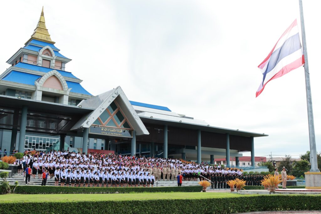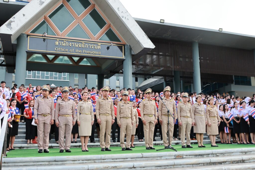 ผู้ช่วยศาสตราจารย์ ดร.วัฒนา รัตนพรหม อธิการบดี ได้กล่าวถึง ความสำคัญของธงชาติไทยว่า เป็นสัญลักษณ์ที่สะท้อนถึงความเสียสละ ความกล้าหาญ และความรักชาติของบรรพบุรุษที่ได้ร่วมกันปกป้องผืนแผ่นดินไทยให้เป็นเอกราชสืบมาจนถึงปัจจุบัน ในฐานะ “มหาวิทยาลัยเพื่อการพัฒนาท้องถิ่น” มรส. ให้ความสำคัญกับการสืบสานอุดมการณ์และคุณค่าของความเป็นไทย โดยธงชาติไม่เพียงแต่เป็นเครื่องหมายของชาติ หากยังสะท้อนพันธกิจของมหาวิทยาลัยที่มุ่งมั่นในการพัฒนาคนรุ่นใหม่ให้มีทั้งความรู้คู่คุณธรรม มีความสำนึกในหน้าที่พลเมือง และพร้อมอุทิศตนเพื่อรับใช้ประเทศชาติและชุมชนท้องถิ่น ธงชาติไทยจึงเป็นเสมือนแรงบันดาลใจและพลังใจให้บุคลากรและนักศึกษาของมหาวิทยาลัยก้าวเดินไปบนเส้นทางแห่งความรับผิดชอบและการทำงานเพื่อสังคม