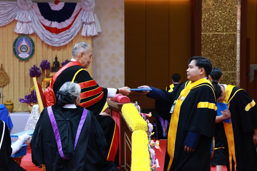 เมื่อวันที่ 20 พฤศจิกายน 2568 ณ หอประชุมใหญ่ มหาวิทยาลัยราชภัฏนครศรีธรรมราช พระบาทสมเด็จพระเจ้าอยู่หัว ทรงพระกรุณาโปรดเกล้าโปรดกระหม่อมให้ พลอากาศเอกชลิต พุกผาสุข องคมนตรีเป็นผู้แทนพระองค์ในการมอบปริญญาบัตรแก่ผู้สำเร็จการศึกษาจากมหาวิทยาลัยราชภัฏเขตภาคใต้ ประจำปีการศึกษา 2566 ในโอกาสนี้ มหาวิทยาลัยราชภัฏสุราษฎร์ธานี ได้นำบัณฑิตและมหาบัณฑิตเข้ารับพระราชทานปริญญาบัตรอย่างสมพระเกียรติ รวมทั้งสิ้น 2,050 คน โดยแบ่งเป็นระดับปริญญาโท (มหาบัณฑิต) จำนวน 52 คน และระดับปริญญาตรี (บัณฑิต) จำนวน 1,998 คน