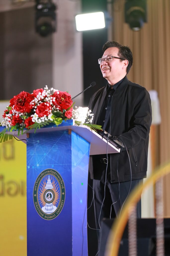 มหาวิทยาลัยราชภัฏสุราษฎร์ธานี (มรส.) จัดกิจกรรมปัจฉิมนิเทศนักศึกษาและตลาดนัดแรงงาน JOB SRU 2026 แก่นักศึกษาที่สำเร็จการศึกษา ประจำปีการศึกษา 2568 เติมเต็มองค์ความรู้ สร้างทัศนคติเชิงบวก และสร้างแรงบันดาลใจ ผ่านวิทยากรศิษย์เก่าผู้ทรงคุณวุฒิที่ร่วมถ่ายทอดประสบการณ์ พร้อมแนะแนวทางการใช้ชีวิตการทำงาน และการปรับตัวในโลกยุคดิจิทัล ที่เต็มไปด้วยความท้าทายและการเปลี่ยนแปลงอย่างรวดเร็วในศตวรรษที่ 21 จากบัณฑิตสู่การเป็น “วิศวกรสังคม” โดยได้รับเกียรติจาก ผู้ช่วยศาสตราจารย์ ดร.วัฒนา รัตนพรหม อธิการบดี มรส. เป็นประธานกล่าวเปิดพิธี และ ดร.สมปราชญ์ วุฒิจันทร์ รองอธิการบดีฝ่ายกิจการนักศึกษาและเครือข่ายศิษย์เก่า กล่าวรายงาน แก่ผู้สำเร็จการศึกษาระดับปริญญาตรีจาก คณะครุศาสตร์ คณะมนุษยศาสตร์และสังคมศาสตร์ คณะนิติศาสตร์ คณะวิทยาการจัดการ คณะวิทยาศาสตร์และเทคโนโลยี คณะพยาบาลศาสตร์ และวิทยาลัยนานาชาติการท่องเที่ยว เมื่อวันที่ 20 มีนาคม 2569 ณ หอประชุมวชิราลงกรณ มหาวิทยาลัยราชภัฏสุราษฎร์ธานี
