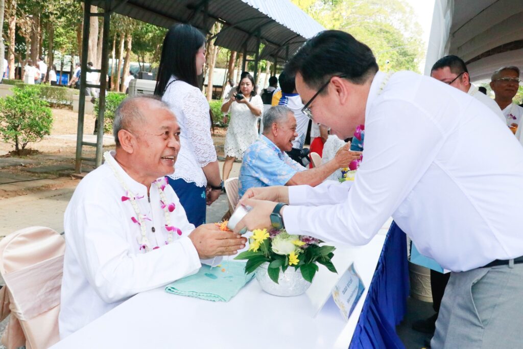 อธิการบดี มรส. นำบุคลากรสืบสานสงกรานต์ไทย สรงน้ำ ‘หลวงพ่อพระพุทธโสธร’ เสริมสิริมงคลชีวิต