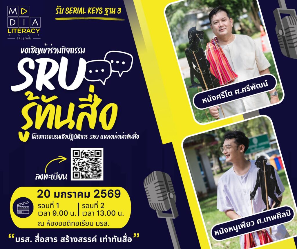 ลิงก์ลงทะเบียน เข้าร่วมโครงการอบรมเชิงปฏิบัติการ SRU แหลงเล่าเท่าทันสื่อ (20 มกราคม 2569)